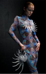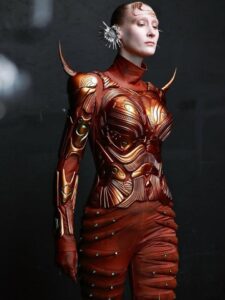 توی شو Exogenesis، بدن انسان فقط بوم نبود؛ بخشی از سازه‌ی لباس بود. ستون‌فقرات‌های شفاف، فلس‌های درخشان و زره‌های متالیکی که با هر حرکت صدا می‌دادن، همه با چاپ سه‌بعدی ساخته و با دوخت سنتی کامل شده بودن. الهامش از افسانه‌های چینی مثل Shan Hai Jing می‌اومد، اما نتیجه، انگار از آینده برگشته بود.
